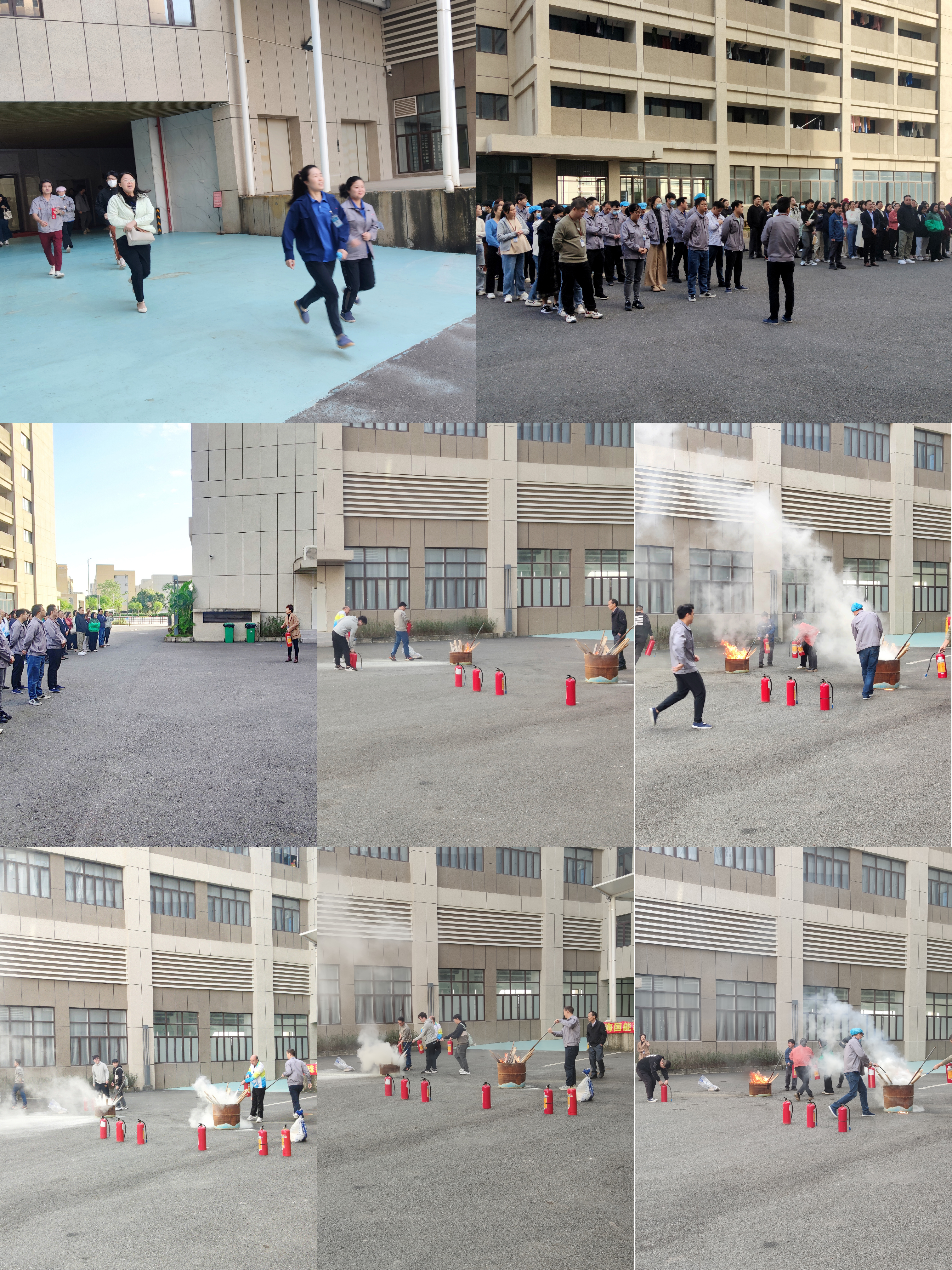 11月27日上午08:30分警报拉响,在管理人员引导下,车间及办公室人员听到警铃迅速通过安全通道撤离大楼,到楼前空地集合,集合后按部门清点人数,确保所有人全部安全撤离。